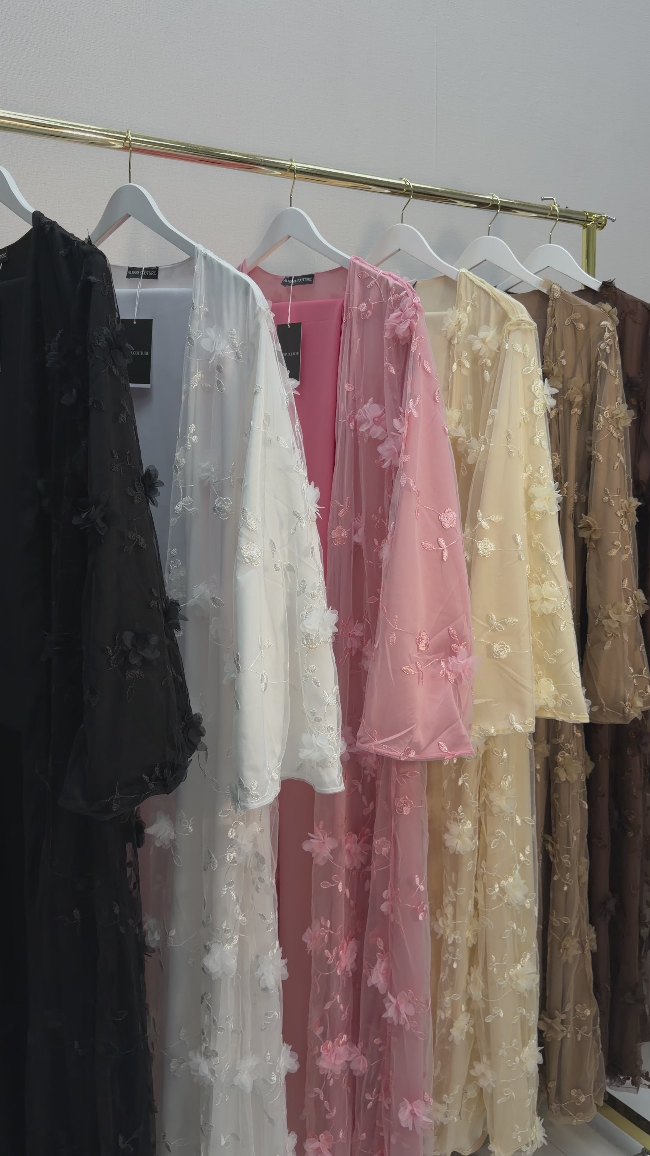 Elevate your modest wardrobe with the Flower Abaya, a luxurious open-front design featuring delicate floral embellishments and premium double-lined construction. The graceful silhouette drapes beautifully for everyday elegance or special occasions. Includes a coordinating veil for a complete, refined look. Crafted with meticulous attention to detail, this piece embodies Al Maha Couture's commitment to timeless sophistication and artisanal quality.